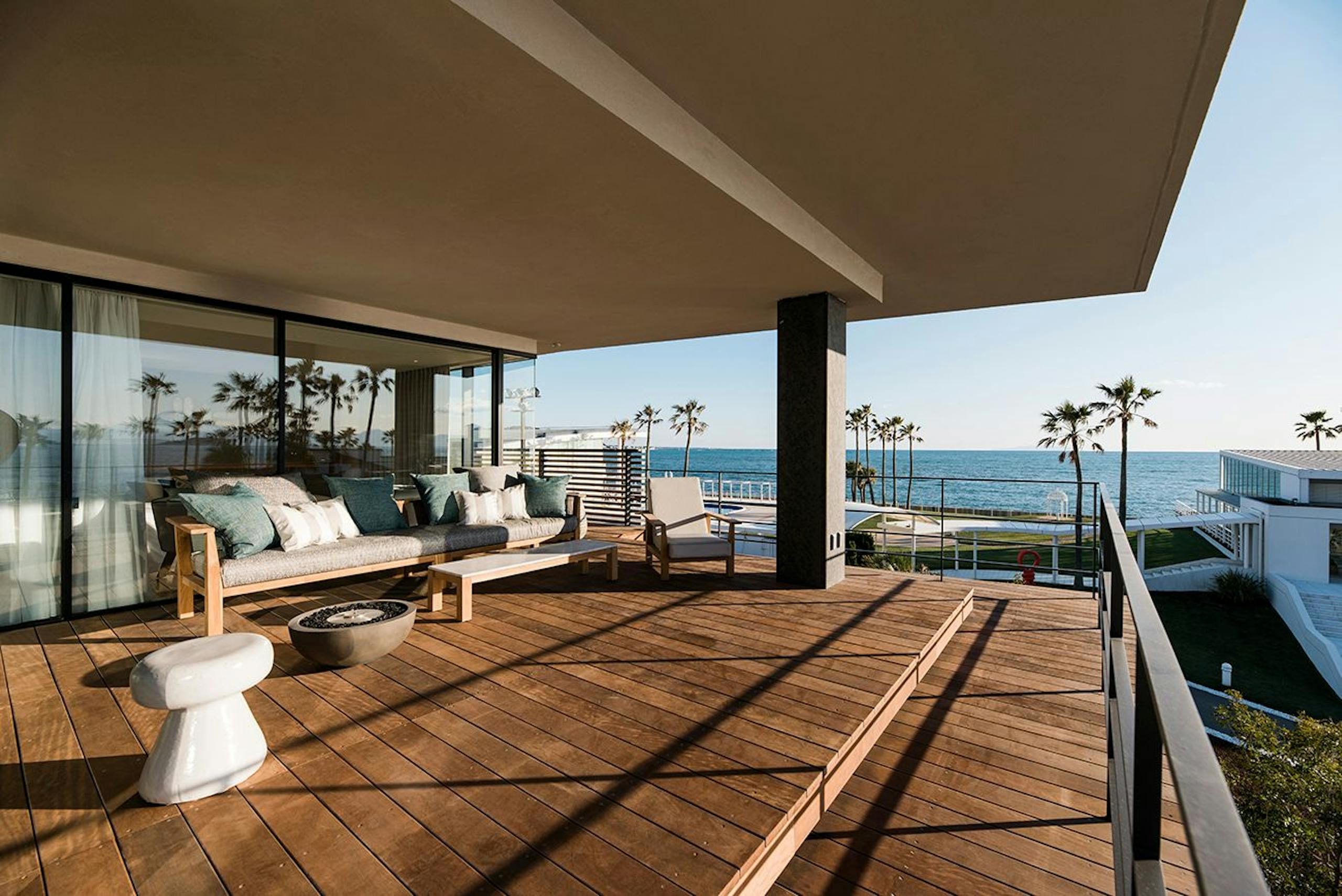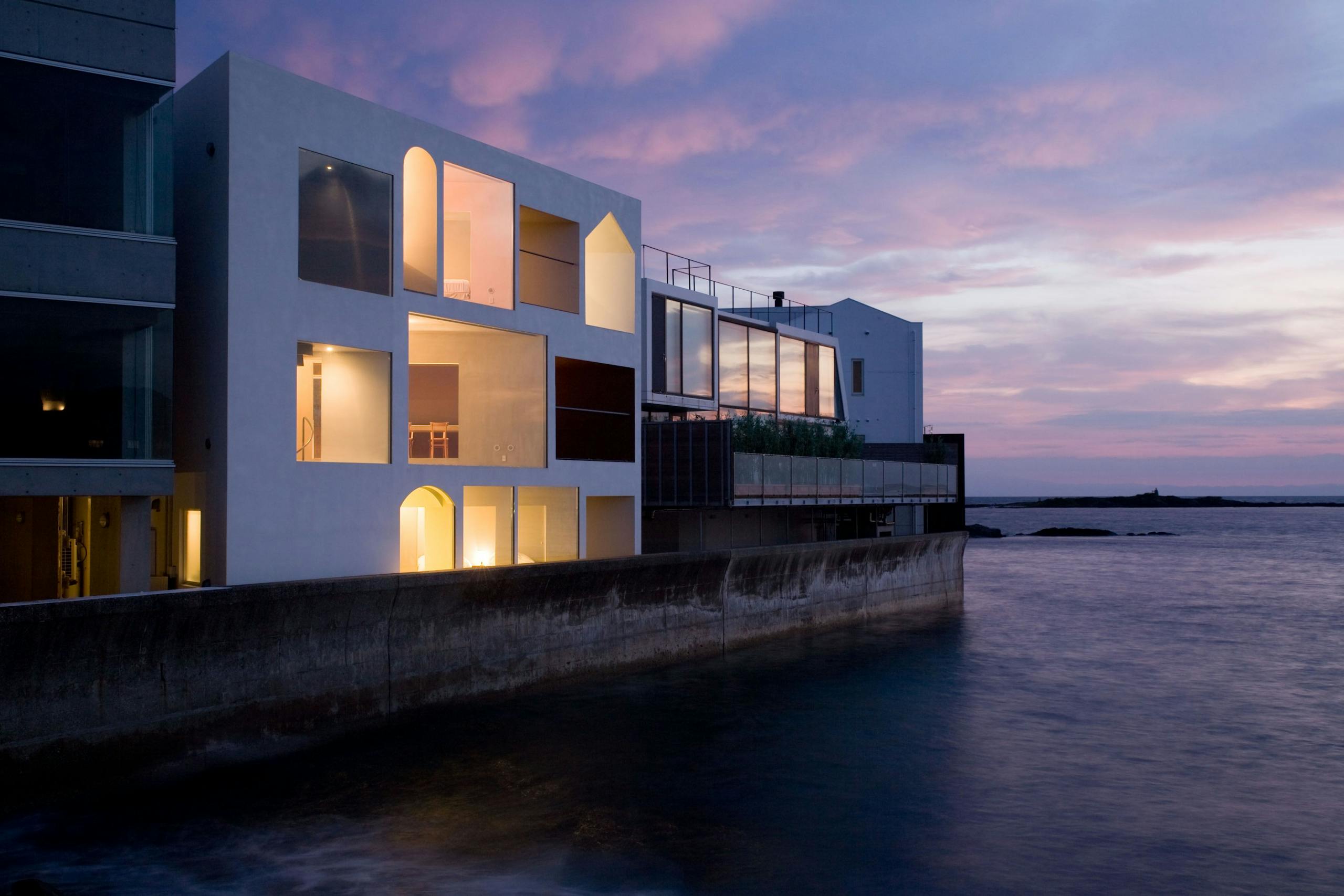 湘南・佐島の貸別荘「Nowhere but Sajima」は全室オーシャンビューで海を間近に感じられる迫力があり、リビングには国内で作れる最大サイズの窓が開放的な空間を演出します。